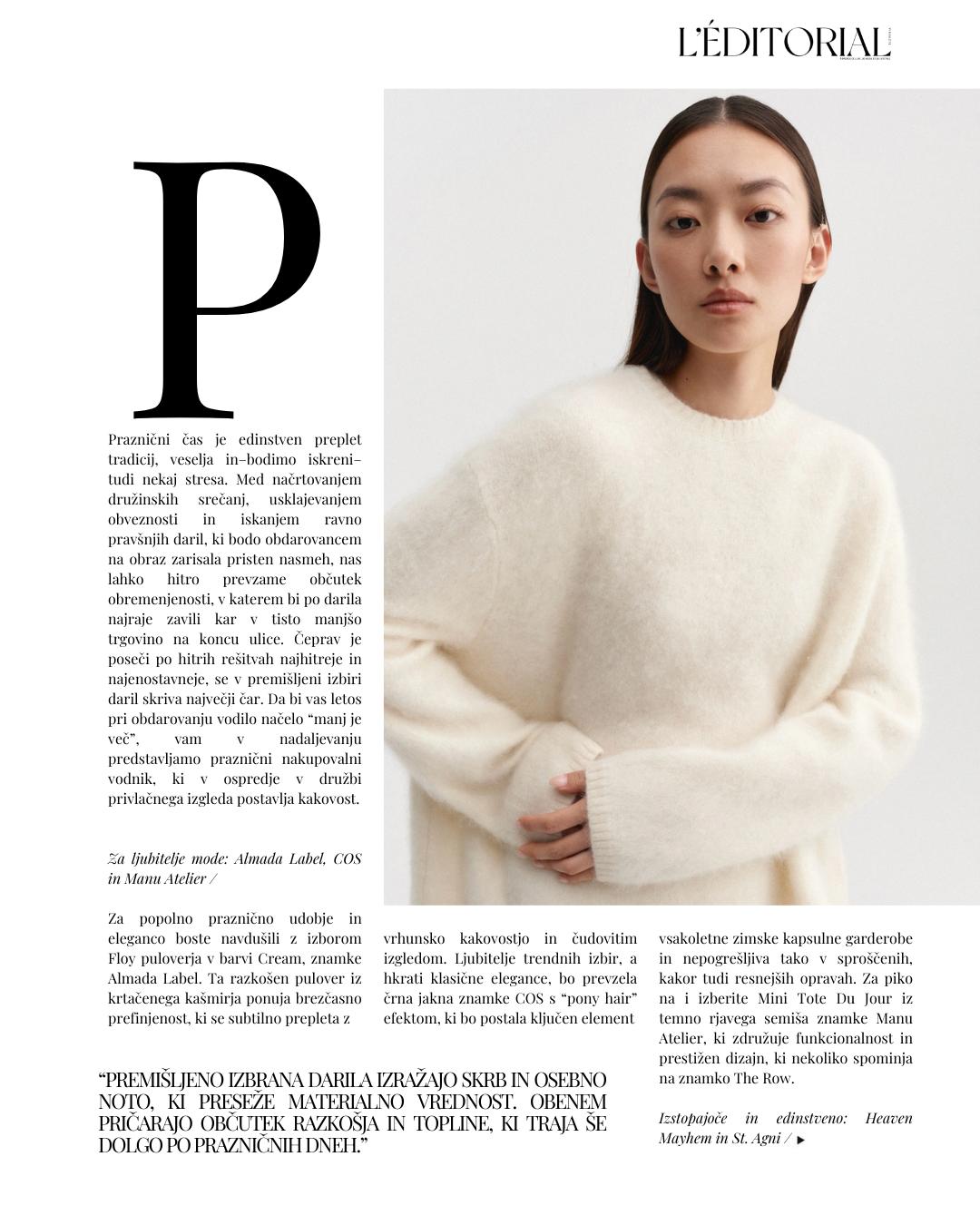 Smo butično spletišče z avtorskimi vsebinami o kulturi, modi, življenjskem slogu in estetiki bivanja.