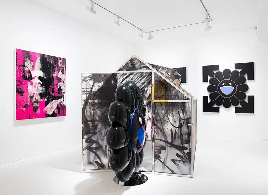 Takashi Murakami, pionir gibanja Superflat, združuje tradicionalno japonsko umetnost s pop kulturo. Negova živahna dela vključujejo ikonični lik gospoda DOB-a in odražajo teme potrošništva ter kulturne identitete. Med letoma 2003 in 2015 je tudi Murakami sodeloval z modno hišo Louis Vuitton in pod kreativnim vodstvom Marca Jacobsa klasični LV monogram odel v barve in igrive motive, kot so nasmejani češnjevi cvetovi. Leta 2018 je sodeloval z Virgilom Ablohom v projektih “Future History” in “Technicolor 2”, ki sta združila značilne Murakamijeve pop-art motive z Ablohovim prepoznavnim minimalistično-urbanim slogom. Skupaj sta ustvarila serijo umetniških del, ki so raziskovala povezave med visoko umetnostjo, popularno kulturo in modo.