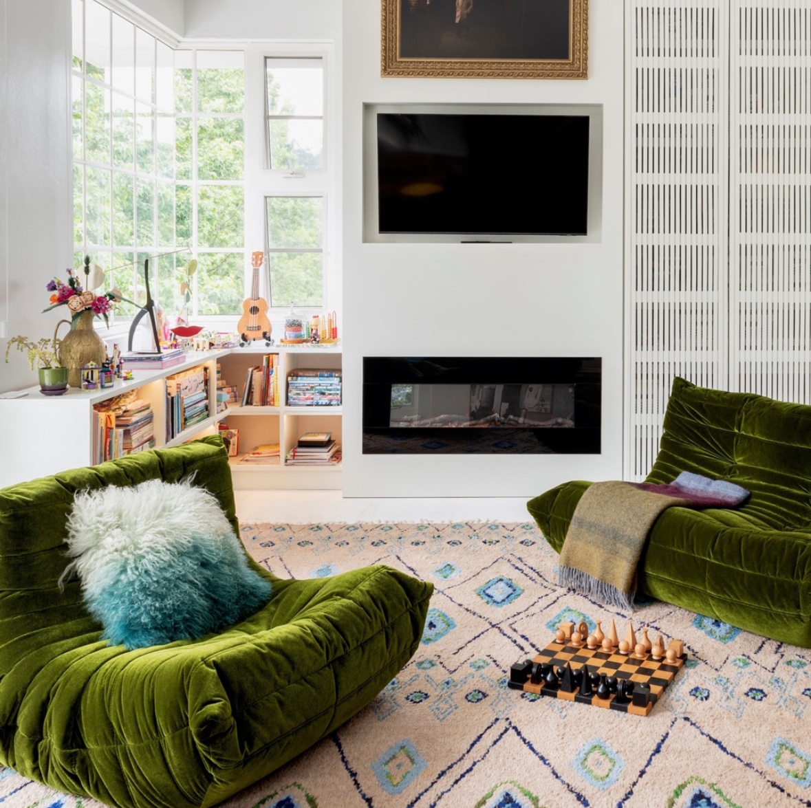 Naj gre za napet roman, izvod najljubše revije ali pa okrasno knjigo, po kateri posežemo le občasno – nekaj izbranega čtiva je zmeraj dobra ideja. Naše na branje priročno čaka v pleteni košari ob fotelju, klubsko mizico pa krasi porfelj čilskega umetnika Guillerma Lorce (njegovo delo je prepoznano po močnih barvnih kontrastih in prefinjeni tehniki, ki združuje vplive baroka in surrealizma), junijski Vogue Adria v zelenih odtenkih (ker se brezhibno ujame z blazinami in spremljavo Trudonovih sveč) ter pregled fotografskih mejnikov Petra Lindberga, priznanega modnega fotografa. Trenutno imamo na seznamu še nadvse mikaven Assoulinov St. Moritz, ki ga nameravamo kupiti ob naslednjem izletu v Milano.