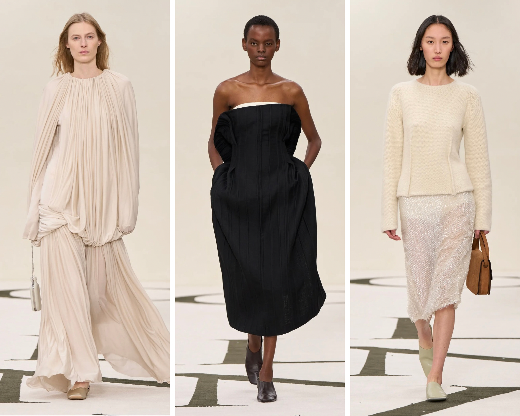 Opisana mešanica rigidnih in sproščenih silhuet je priklicala podobno lahkotnost in sofisticiranost, kot jo opažamo pri blagovnih znamkah Toteme, The Row, Victoria Beckham, Khaite in druge. Ker smo ljubitelji minimalistične estetike, dolgih silhuet, slojenja in seveda nosljivosti, nas je s svojimi kosi navkljub temu navdušila; čeprav ne izstopajo po drznosti ali inovativnosti, bomo našo garderobo brez dvoma obogatili s katerim od krasnih volnenih plaščev, parom nizke obutve ali daljšo obleko.