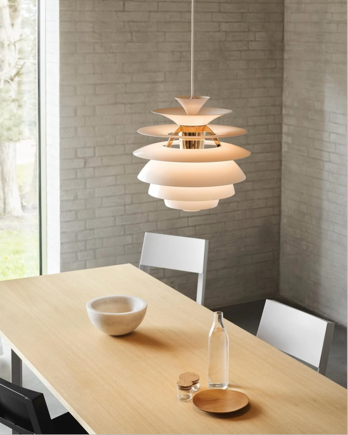 Od leve proti desni: Louis Poulsen Keglen table lamp; Louis Poulsen NJP Floor Lamp; Louis Poulsen PH Snowball; Louis Poulsen VL Studio table/floor lamp.