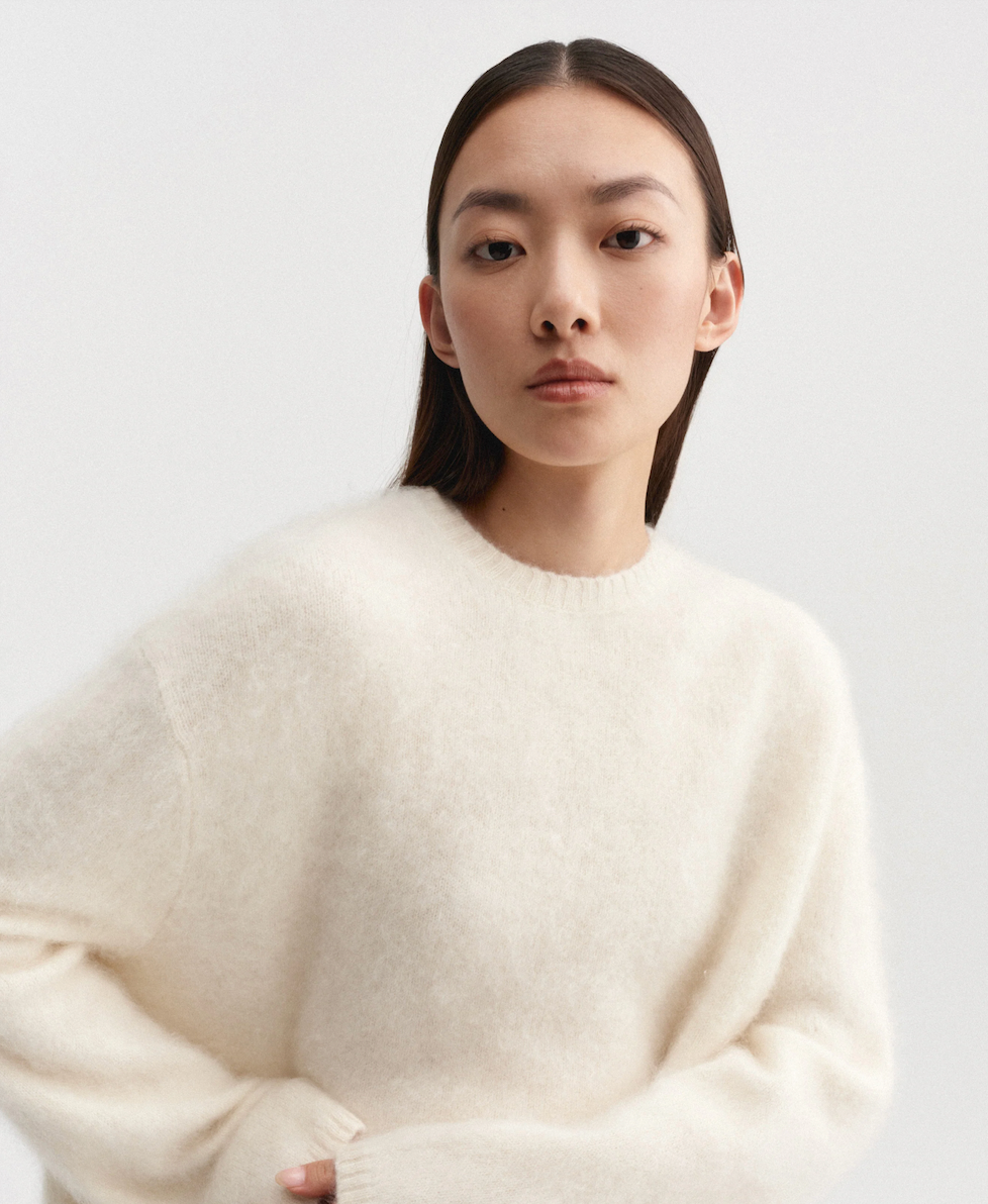 1-Almada Label Gloy Cashmere Sweater in Cream, 420€; 2-COS Collared Pony-Hair Effect Leather Jacket, 849€; 3-Manu Atelier Mini Tote du Jour Deep Brown Suede, 525€; 4-Heaven Mayhem Solene Choker Set, 158,95€; 5-St.Agni Ballet Boot in black, 515€; 6-Byredo Blache Eau de Parfum 50ml, 165€; 7-Diptyque Figuer Classic Candle, 58€; 8-KŌDŌ London By The Fire Home Fragrance 100ml, 46,95€; 9-Nécessaire The Body Oil 150ml, 49,50€; 10-L’Objet Gold Espresso Cup+Saucer (Set of 2), 230€; 11-Papier Future Pine Leather 2025 Diary, 42,95€; 12-Vehla Dixie - Croc Tort/Cinnamon Sunglasses, 200€; 13-Freja New York Mercer Bag Espresso, 288,95€.